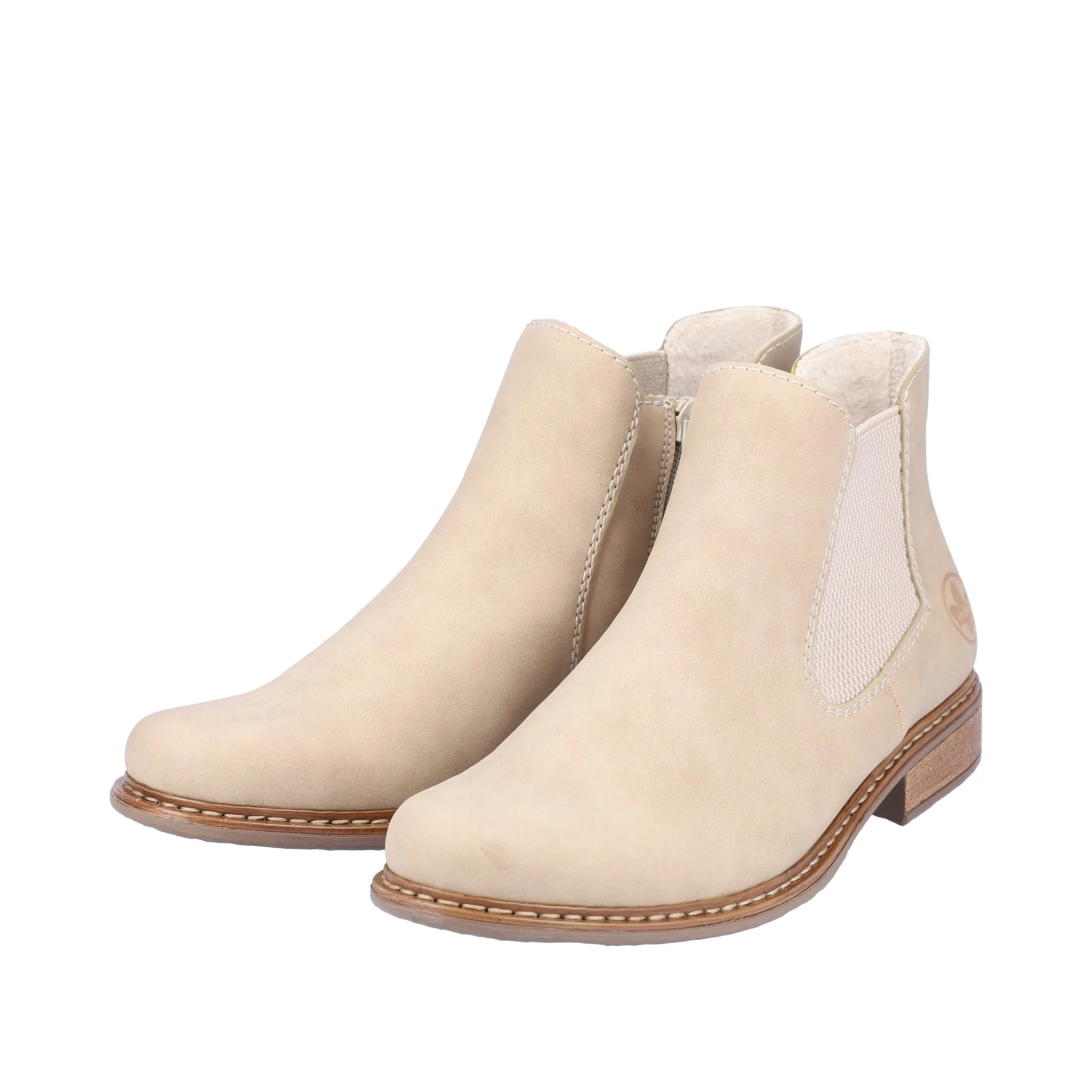 Damen – Chelsea Boot in beige mit Gummizug + Reißverschluss.