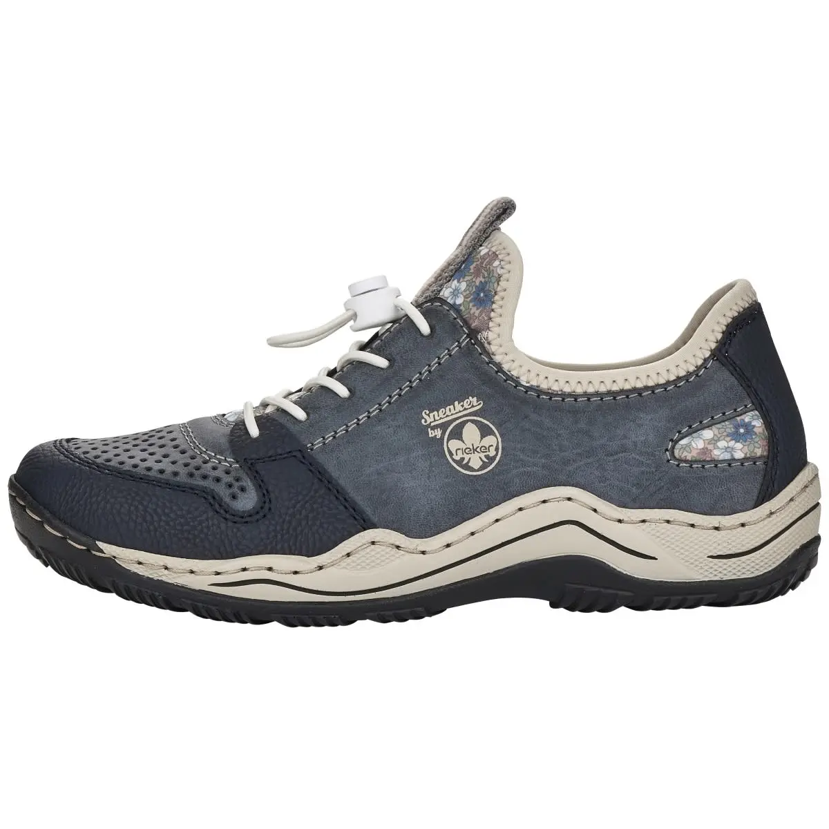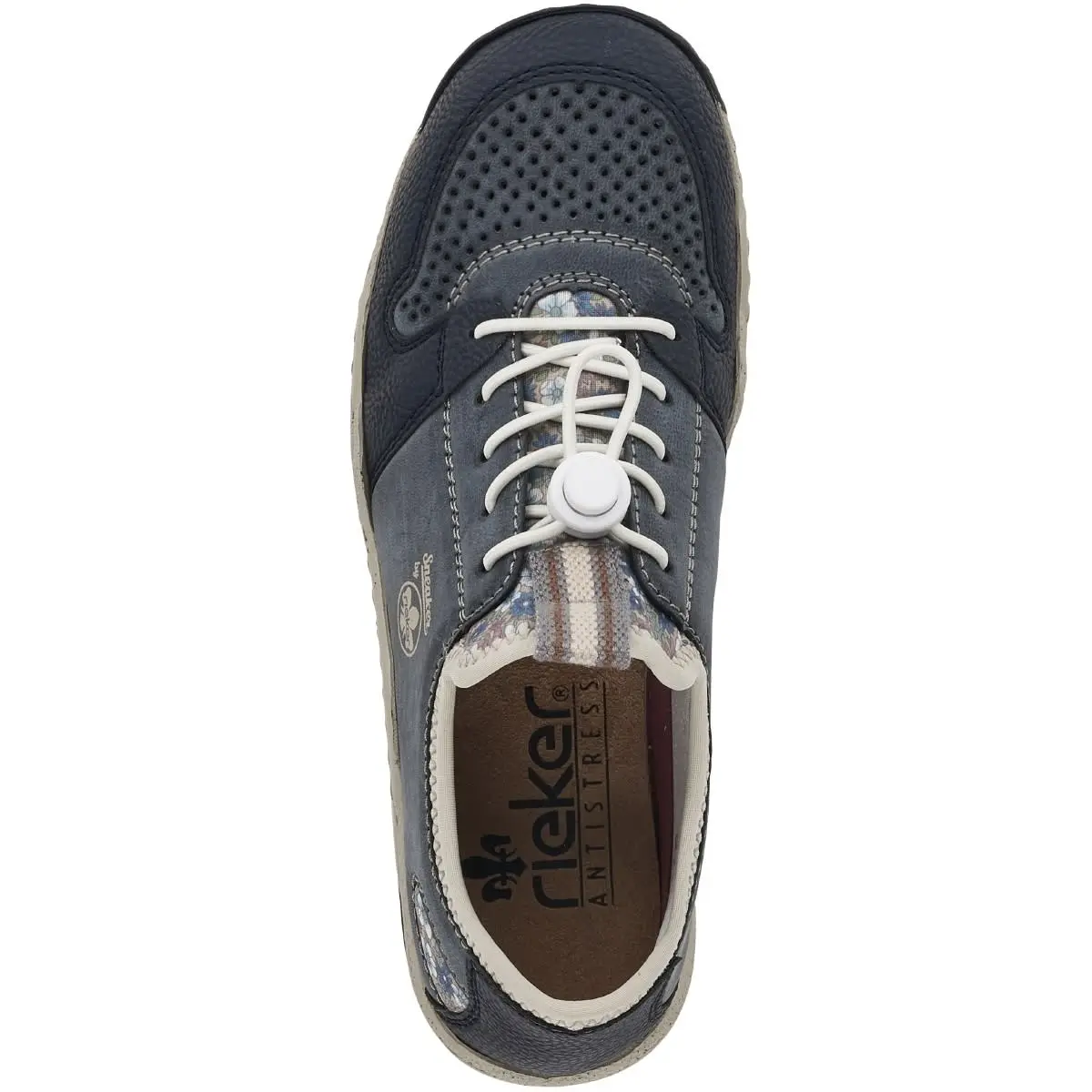 Das Obermaterial aus Synthetik und Textil ist robust und strapazierfähig und erzeugt einen hochwertigen Look. Die weiche Antistress Innensohle polstert jeden Schritt gekonnt ab. Highlight sind die farbigen Ziernähte und die Lochung im Zehenbereich. Dieser Rieker ist ein stylischer Schuh, der deinem Outfit die Krone aufsetzt und sich gut kombinieren lässt.