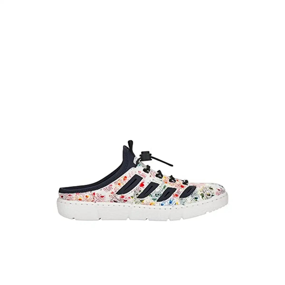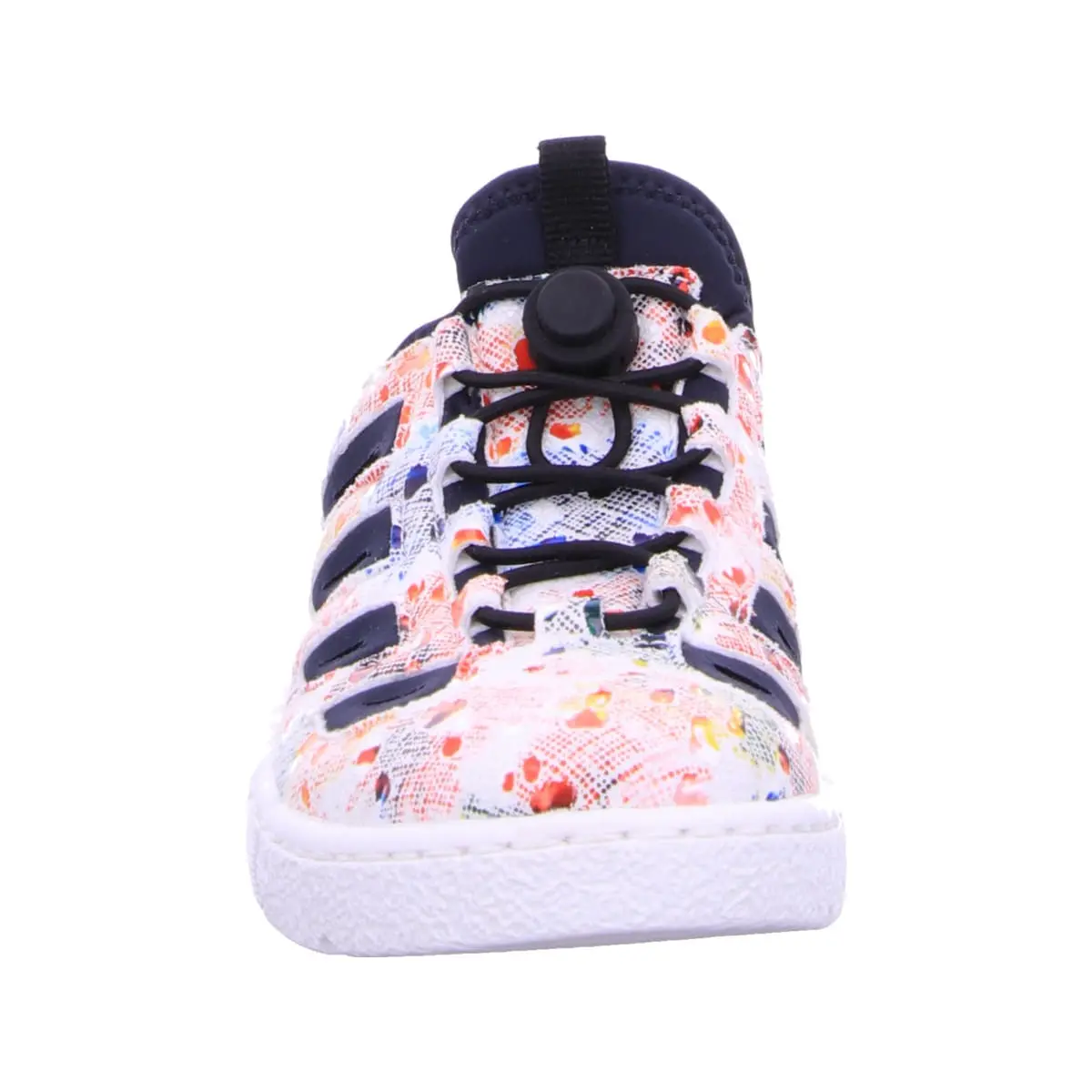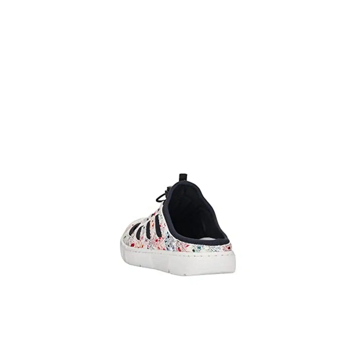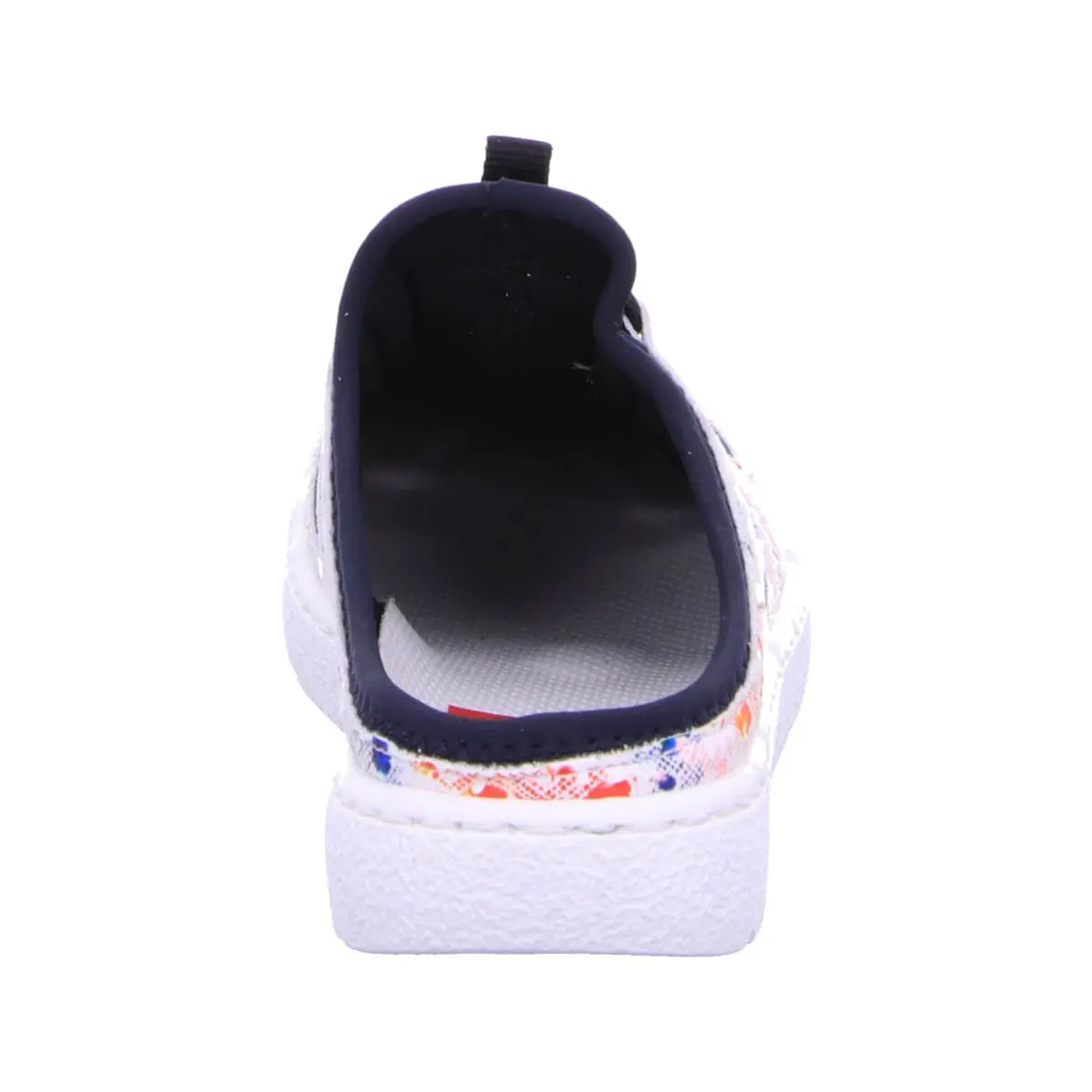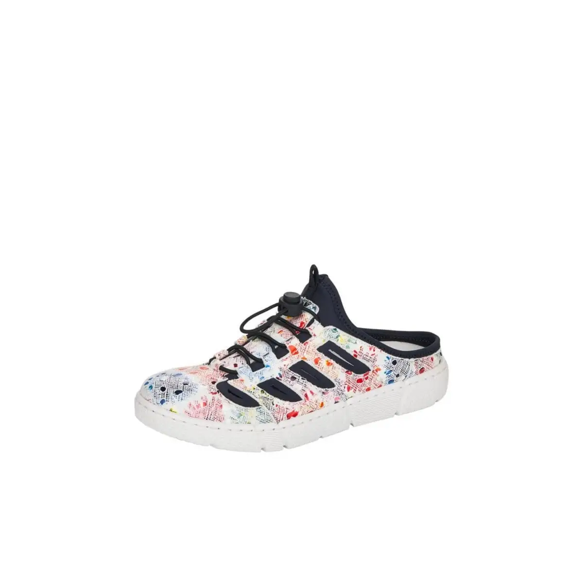 Damen Pantoletten von Rieker aus einem hochwertigem Synthetikmaterial. Der Schuh hat eine normale Weite. Der Absatz ist durchgehend flach. Die Schuhgröße fällt regulär aus.