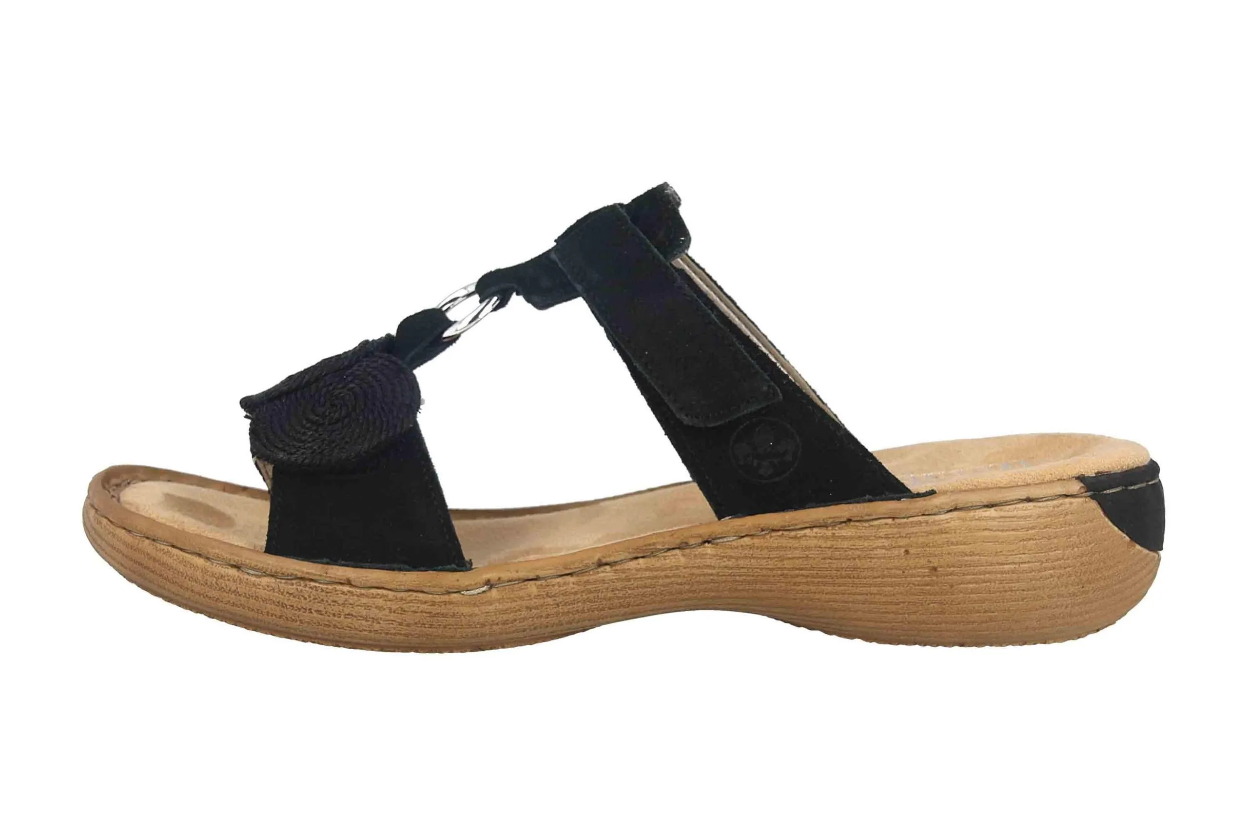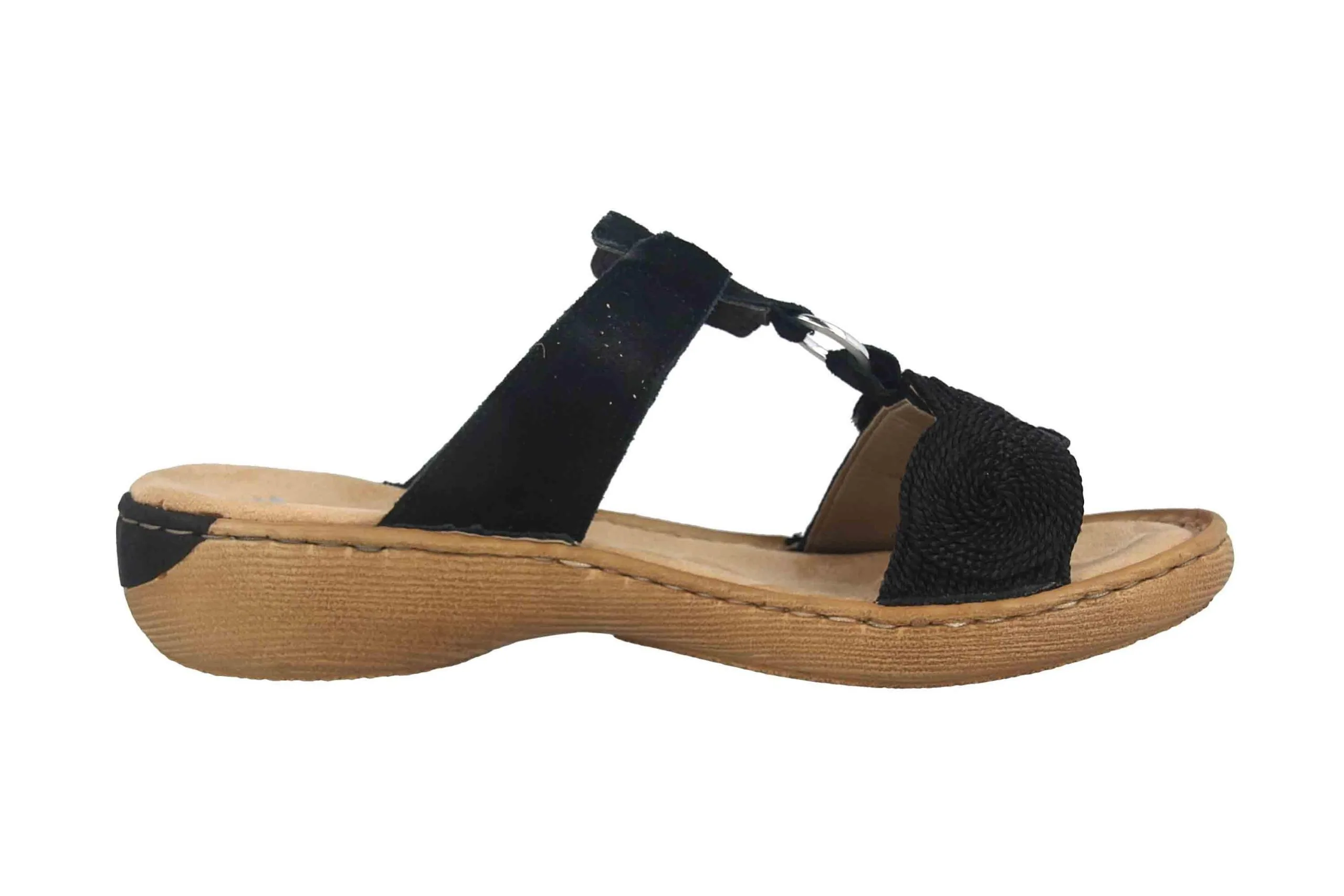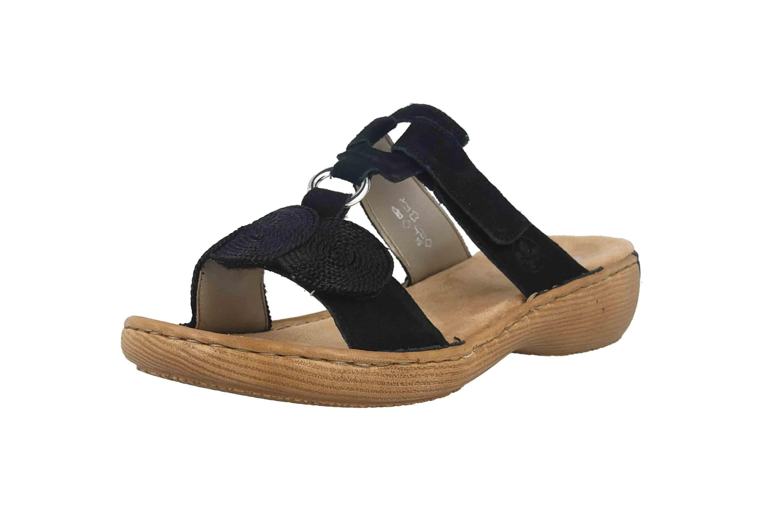 Bei diesem formschönen Schuh der Marke Rieker handelt es sich um ein Modell aus der Kategorie Pantoletten. Diese Damenschuhe in der Farbe Schwarz überzeugen durch ein klares Design und unterstreichen die aktuelle Schuhmode. Große Schuhe von Rieker lassen sich perfekt mit dem urbanen Modegeist kombinieren und verleihen jedem modernen aber auch einem klassisch-sportivem Outfit den passenden Schliff. Das Außenmaterial bei diesem Modell wurde aus Rauleder hergestellt, als Innenmaterial wurde Synthetik verwendet. Bei diesen Schuhen kann als Weite Schmale Weite (E) berücksichtigt werden. Die Riricon-Sohle sorgt jederzeit für einen guten Auftritt und ein mit einer Höhe von 3,5 cm sorgt für die harmonische Silhouette.