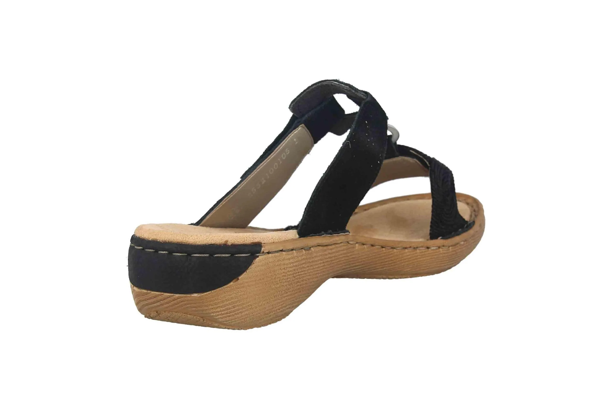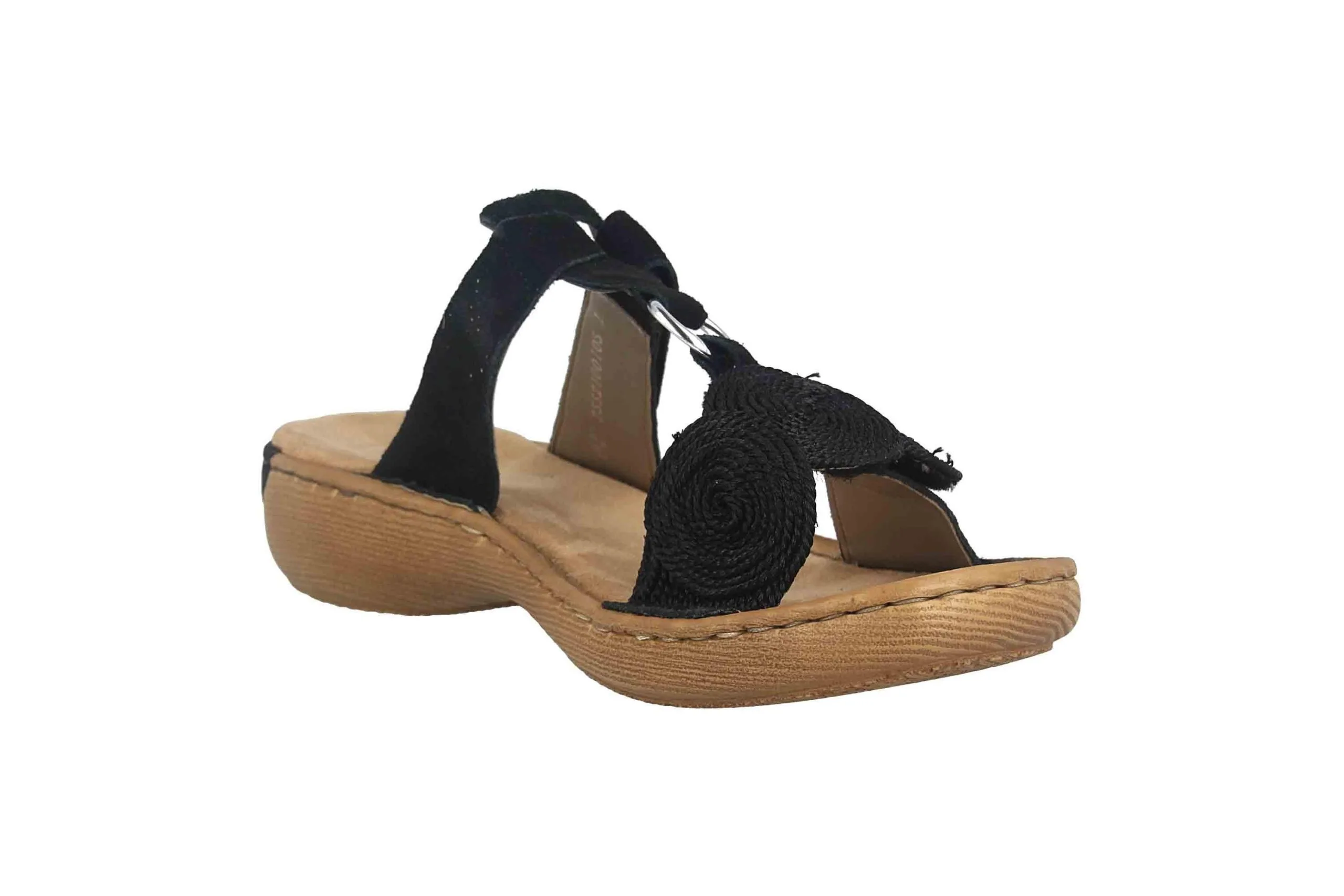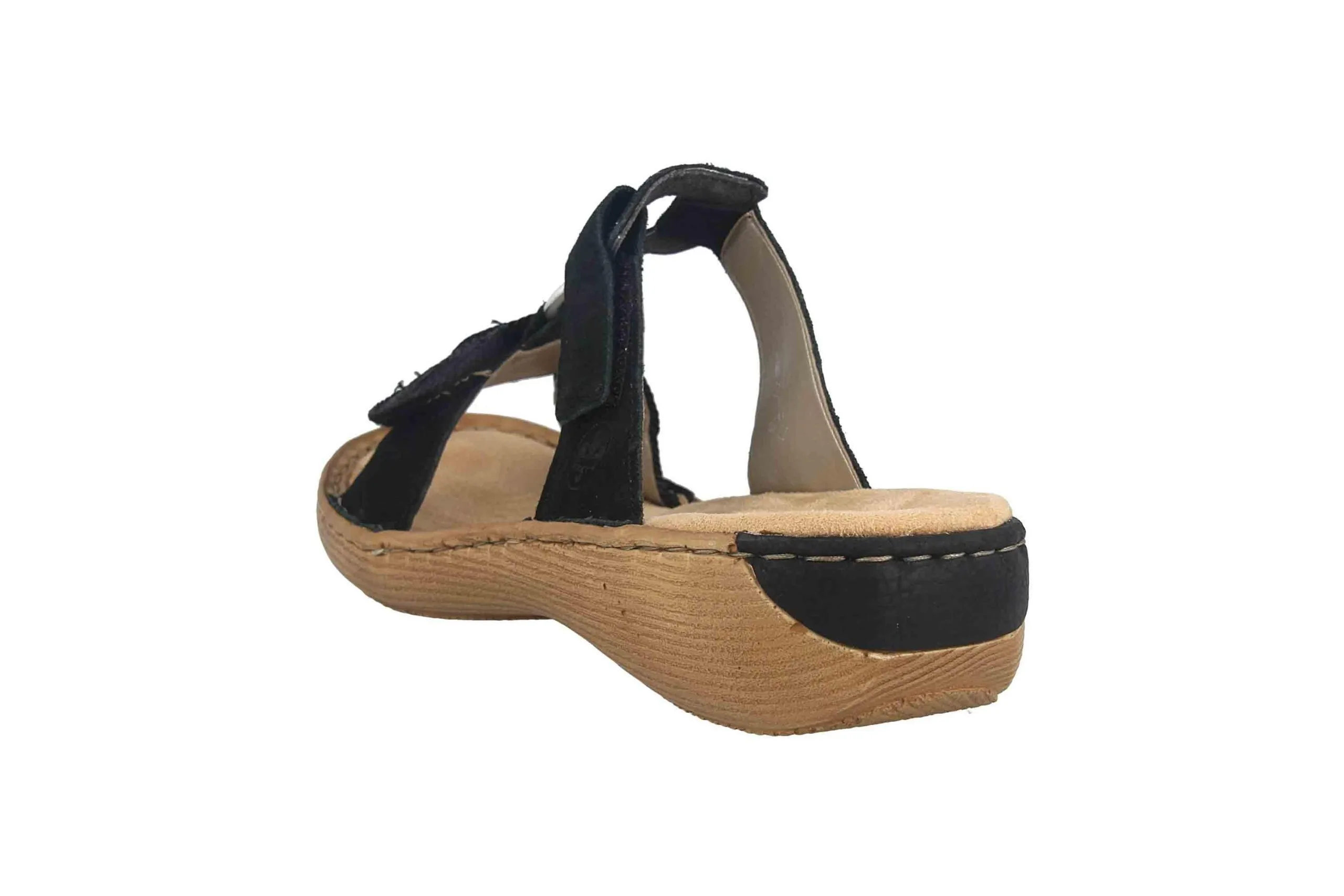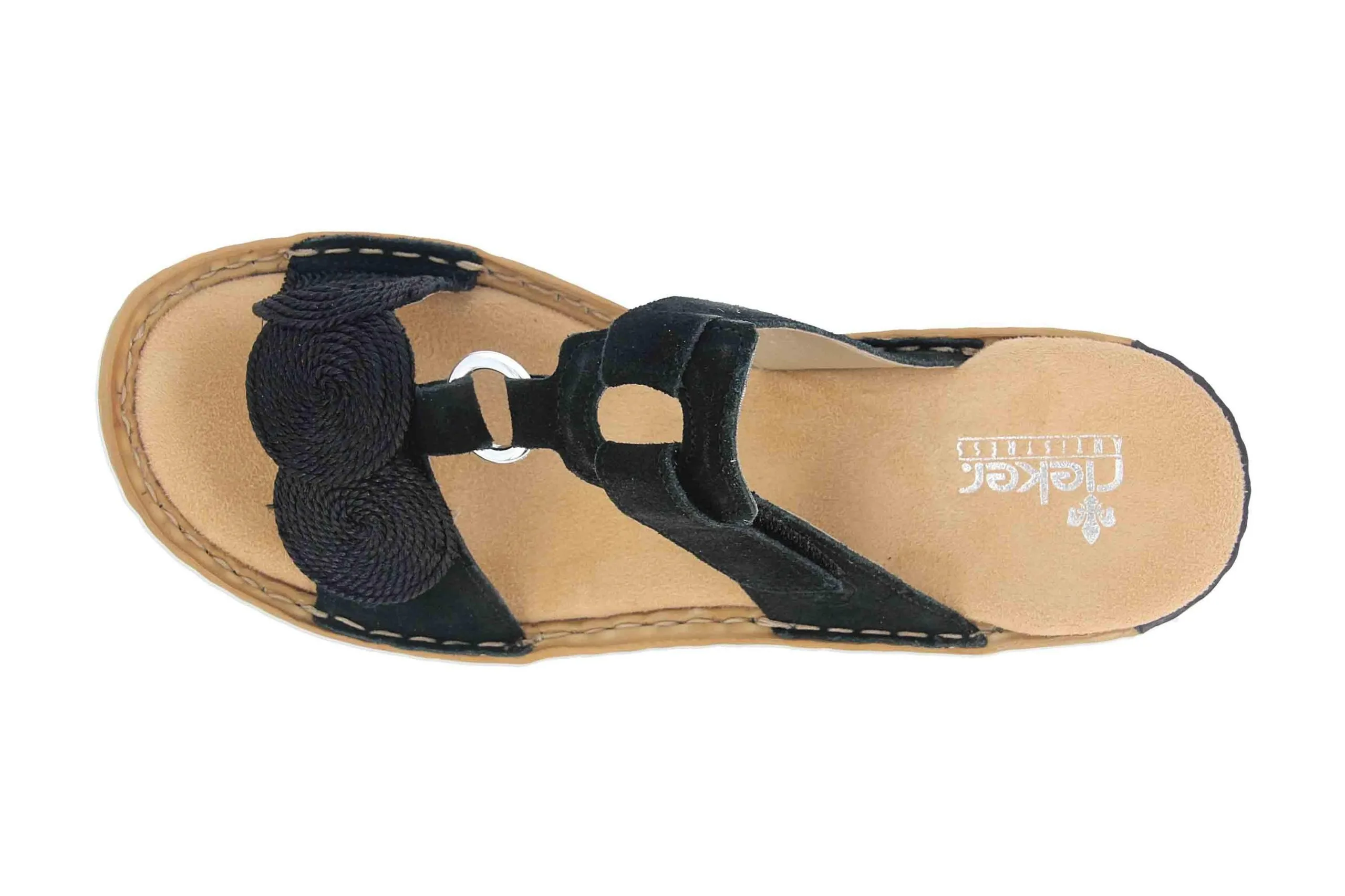 Bei diesem formschönen Schuh der Marke Rieker handelt es sich um ein Modell aus der Kategorie Pantoletten. Diese Damenschuhe in der Farbe Schwarz überzeugen durch ein klares Design und unterstreichen die aktuelle Schuhmode. Große Schuhe von Rieker lassen sich perfekt mit dem urbanen Modegeist kombinieren und verleihen jedem modernen aber auch einem klassisch-sportivem Outfit den passenden Schliff. Das Außenmaterial bei diesem Modell wurde aus Rauleder hergestellt, als Innenmaterial wurde Synthetik verwendet. Bei diesen Schuhen kann als Weite Schmale Weite (E) berücksichtigt werden. Die Riricon-Sohle sorgt jederzeit für einen guten Auftritt und ein mit einer Höhe von 3,5 cm sorgt für die harmonische Silhouette.