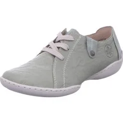 Flotte Damen Sneakers von Rieker aus einem feinen hochwertigem Glattleder. Der Schuh hat eine normale Weite. Der Artikel verfügt über einen Schnürverschluss. Die Schuhgröße fällt regulär aus.