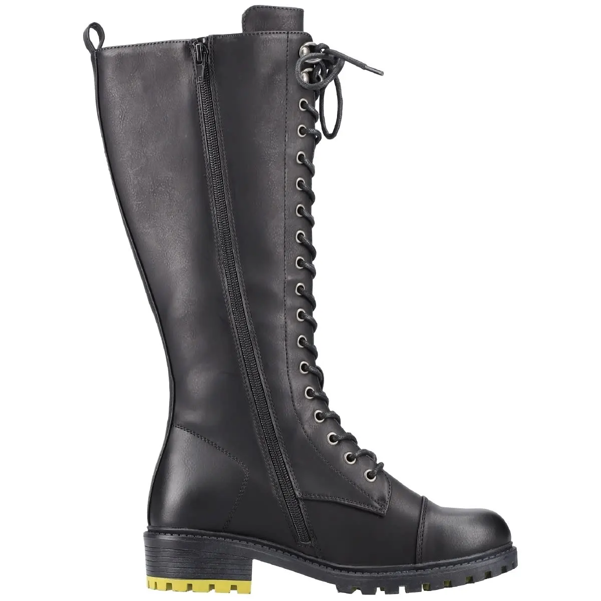 Das Obermaterial aus Lederimitat macht den Stiefel zu einem hochwertigen Allrounder. Er passt sich gut an deine Waden an und sitzt so immer bequem. Das weiche Innenfutter hält deine Füße angenehm warm. Dieser Schuh ist ein schlichter, klassischer Stiefel mit leichtem Profil, der zu jedem Outfit passt und gerade zu einem Kleid oder Rock eine wunderbare Figur macht.