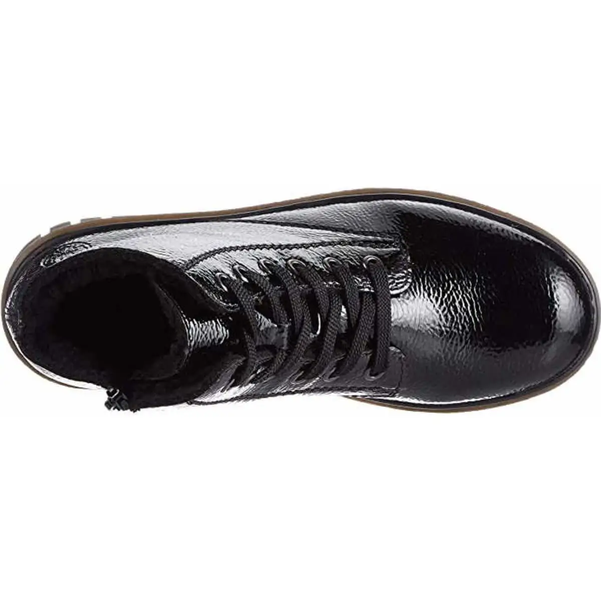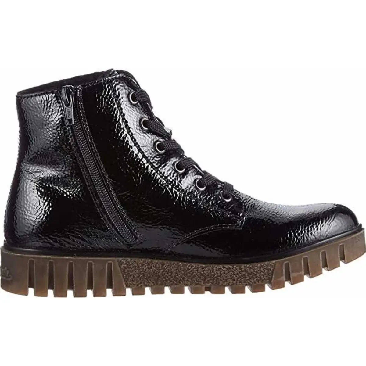 Schöne Damen Stiefeletten von Rieker aus einem feinen hochwertigem Kunstleder. Innen ist der Schuh mit Kunstleder augestattet. 3 cm. Die Laufsohle ist aus Krepp. Der Artikel verfügt über einen Schnürverschluss.