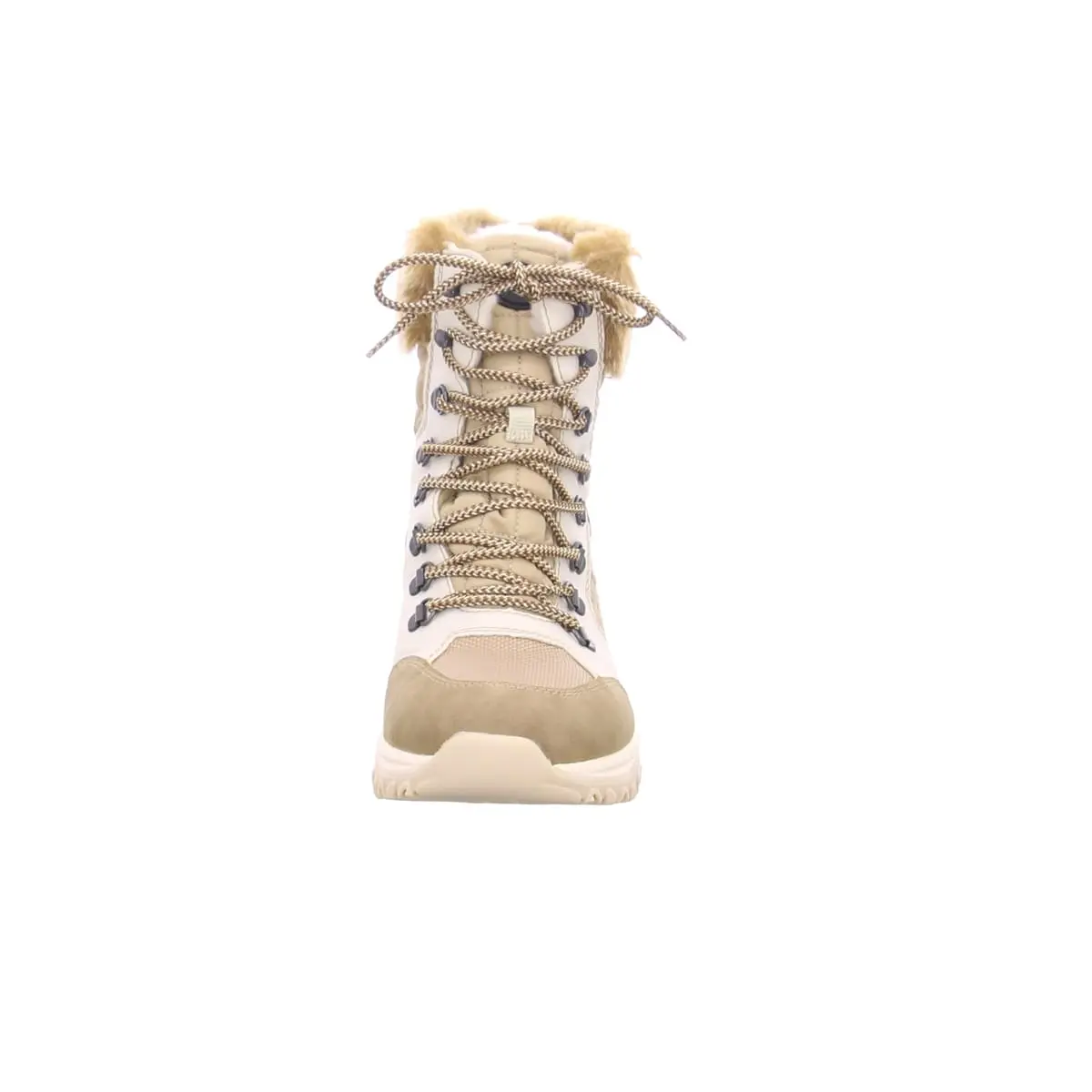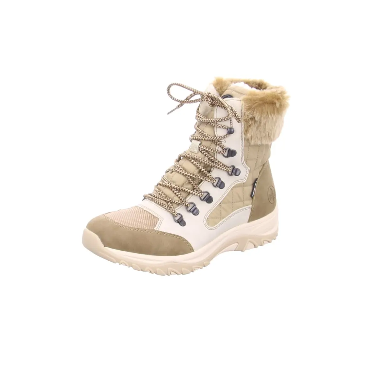 Schöne Damen Stiefeletten von Rieker aus einem hochwertigem Synthetikmaterial. Innen ist der Schuh mit einem hochwertigem Kunstfell ausgestattet. Der Schuh hat eine normale Weite. Der Absatz ist durchgehend flach. Die Laufsohle ist aus Gummi. Der praktische Reißverschluss ist ideal zum einfachen an- und ausziehen. Die Schuhgröße fällt regulär aus.